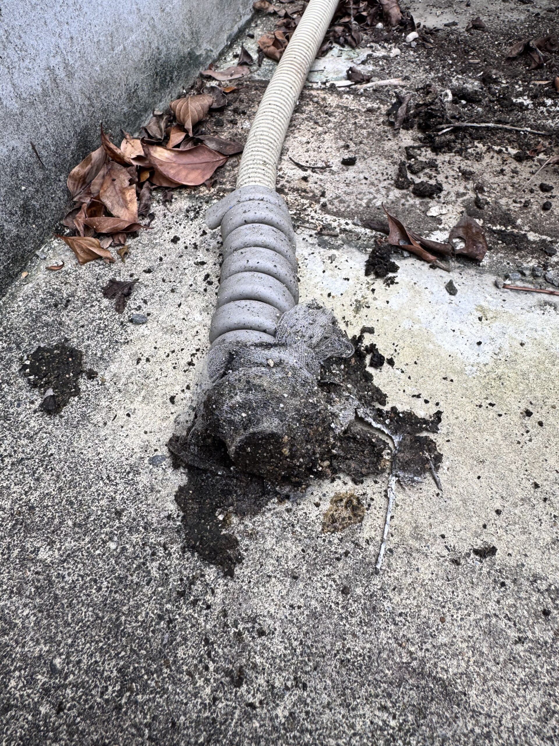 防虫の為、ドレンホースにパンストを巻いてあるのですが…アウトーっです! チョー詰まってマース涙涙